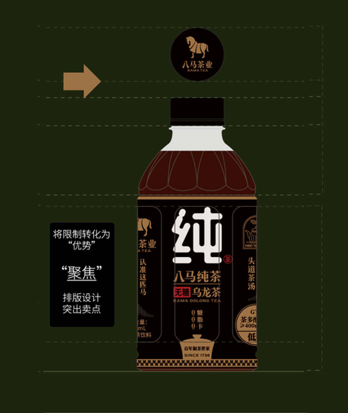 從瓶型到外觀的設(shè)計(jì)八馬純茶飲料都與“中國(guó)茶”的契合調(diào)性高級(jí)質(zhì)感的整體色調(diào)讓這一瓶茶更“純醒目的“純”字讓人眼前一亮中國(guó)茶元素細(xì)節(jié)的融入使這一系列有了濃濃的中國(guó)味道