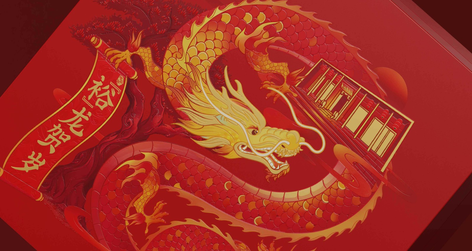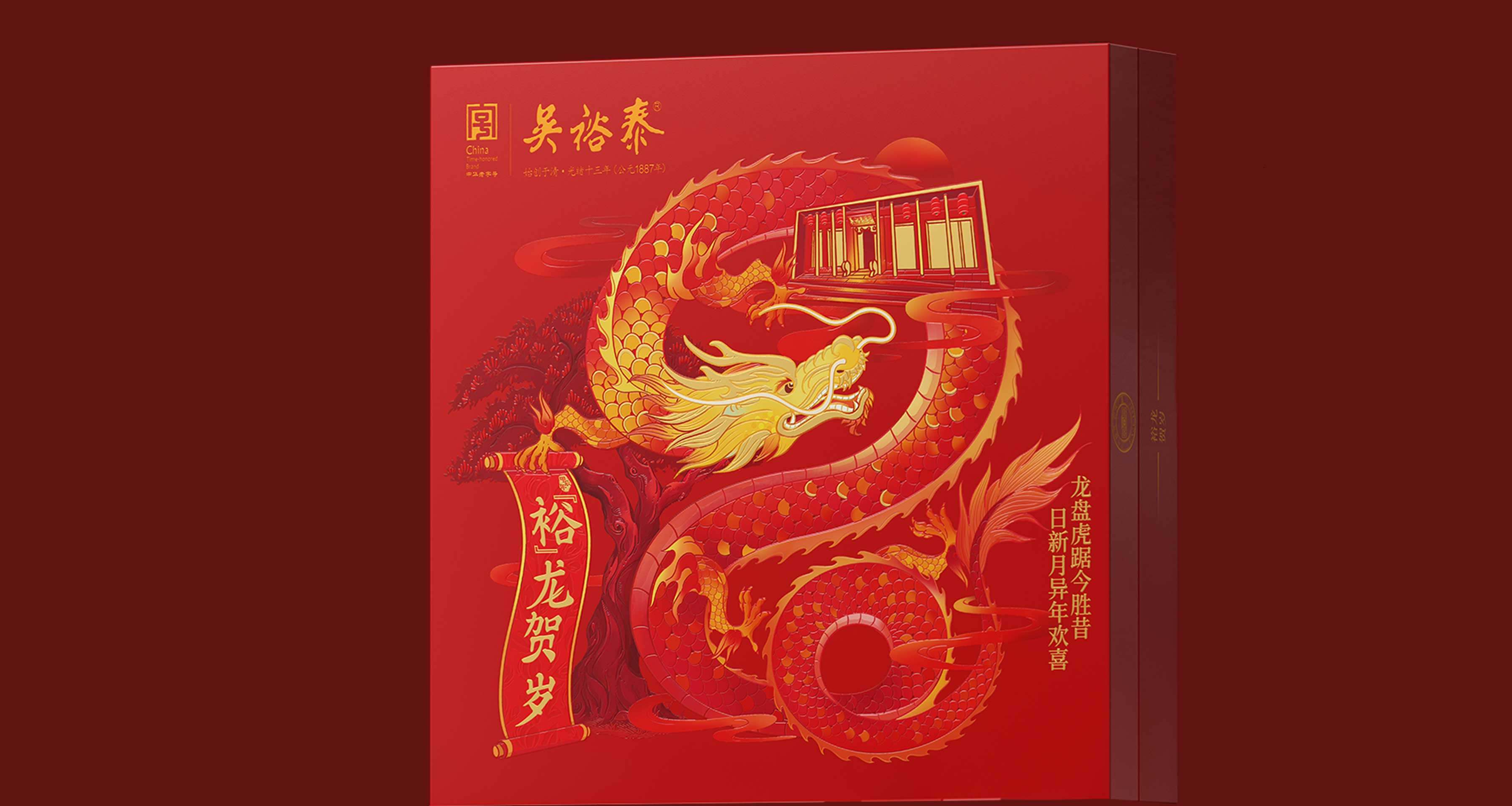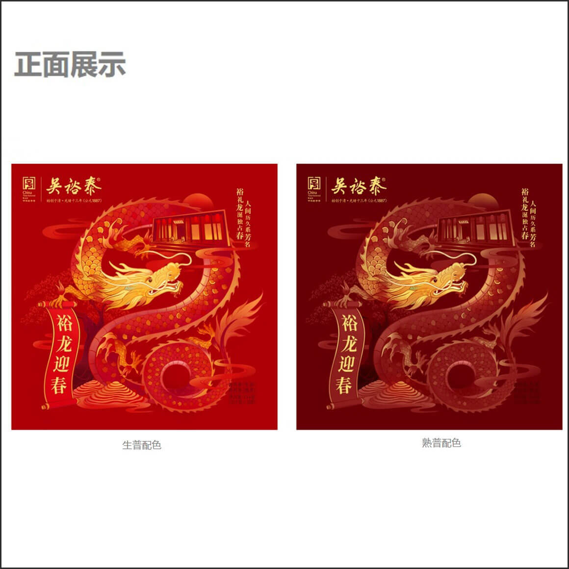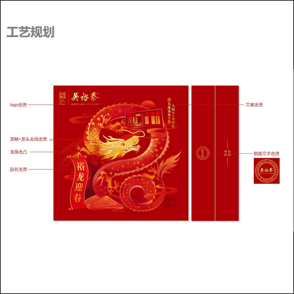 以“裕龍迎春”為主題概念出發(fā),結(jié)合龍?zhí)ь^形態(tài)、吳裕泰門(mén)店+茶園茶樹(shù),體現(xiàn)專屬龍年“從茶園到茶杯”的吳裕泰文化
