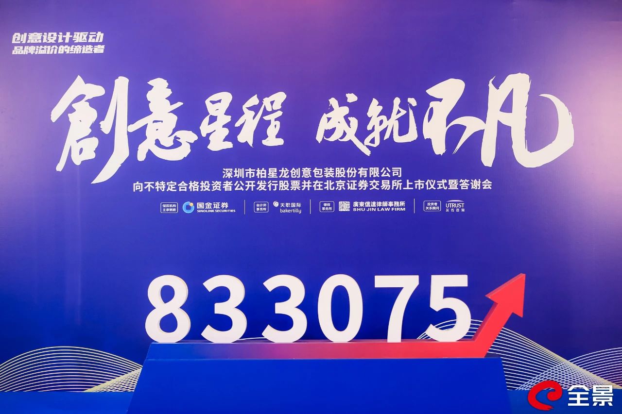 在各方各界的一路支持下,柏星龍順利成為北交所上市企業(yè)。著眼未來,柏星龍將繼續(xù)秉持“以原創(chuàng)為指導(dǎo)思想、新奇特為創(chuàng)意理念”,繼續(xù)發(fā)揮“品牌策略規(guī)劃、創(chuàng)意設(shè)計(jì)、技術(shù)研發(fā)、產(chǎn)品交付”四位一體創(chuàng)意包裝服務(wù)的業(yè)務(wù)優(yōu)勢,一如既往地助力客戶打造暢銷產(chǎn)品,提升產(chǎn)品整體形象,增加產(chǎn)品附加值。
