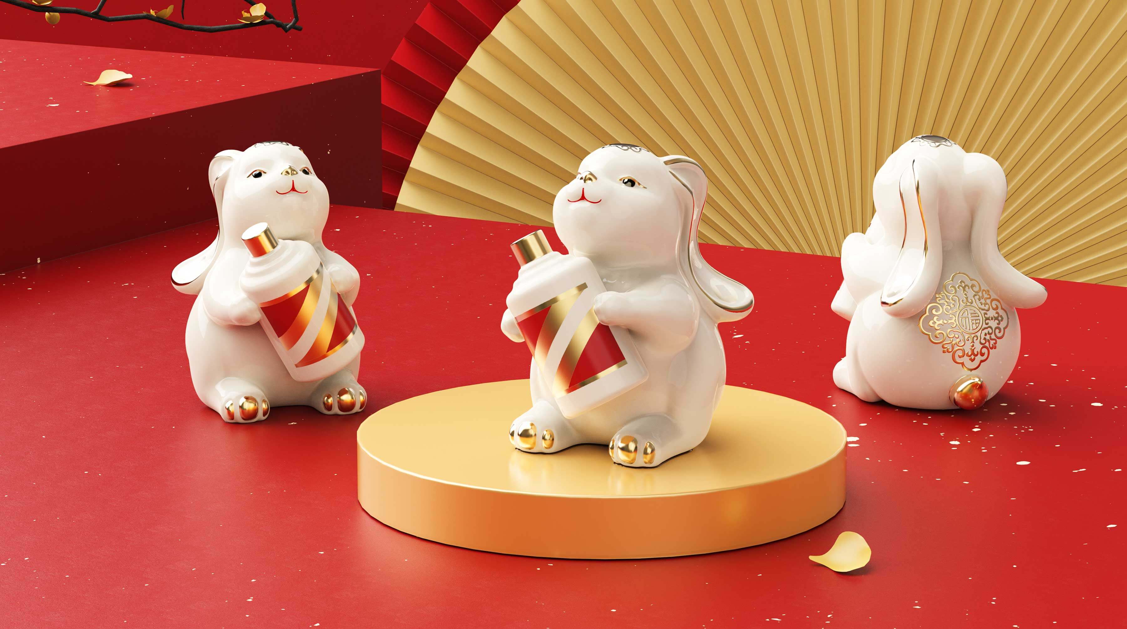 吉祥的玉免視覺手執(zhí)新春梅花傳承非遺剪紙技藝,傳遞新春的喜悅與祝福,赤水河環(huán)繞在碗底,寓意福水長流楊柳灣古井、茅臺正大門青綠山水之間,躍然于碗邊傳遞著深厚的茅臺文化,圓碗方底,方圓結(jié)合,更顯古韻。