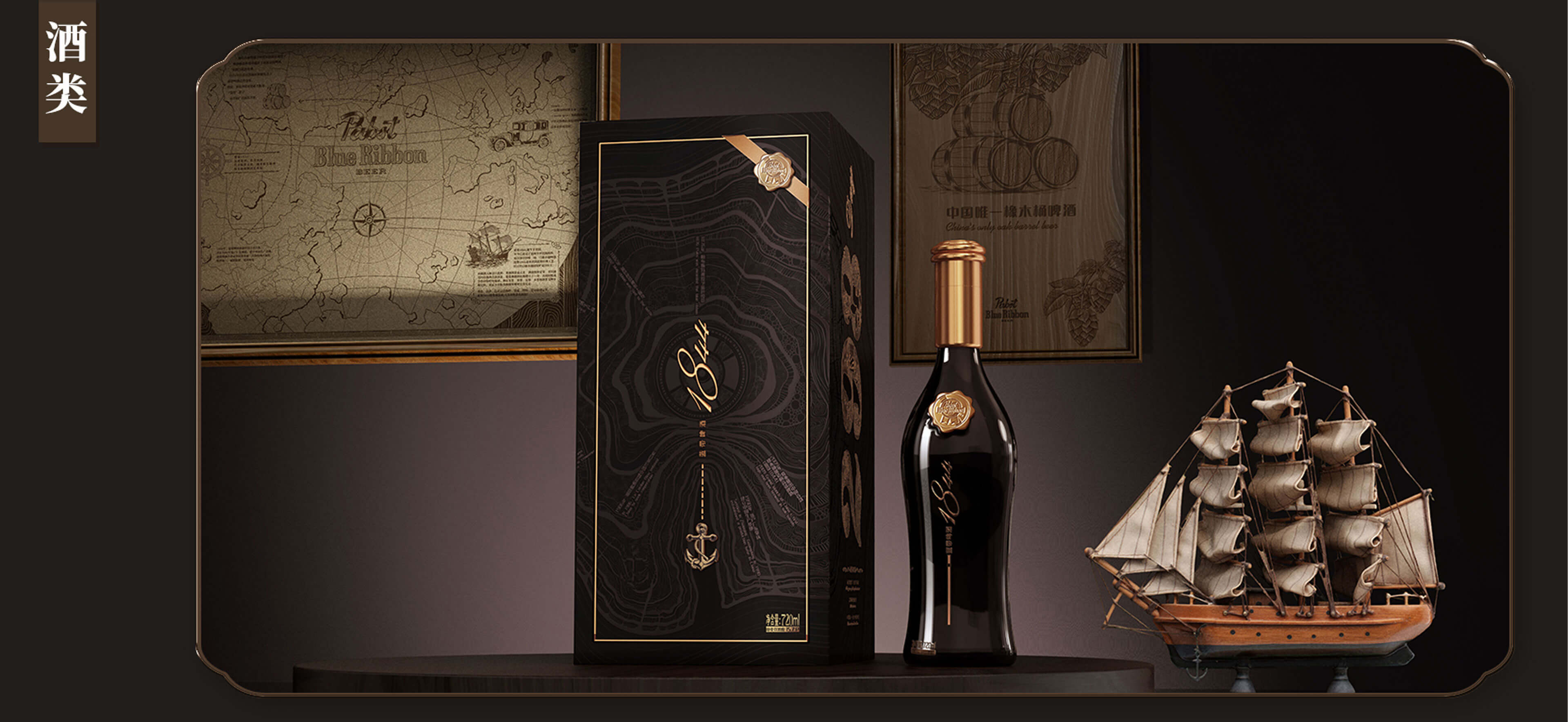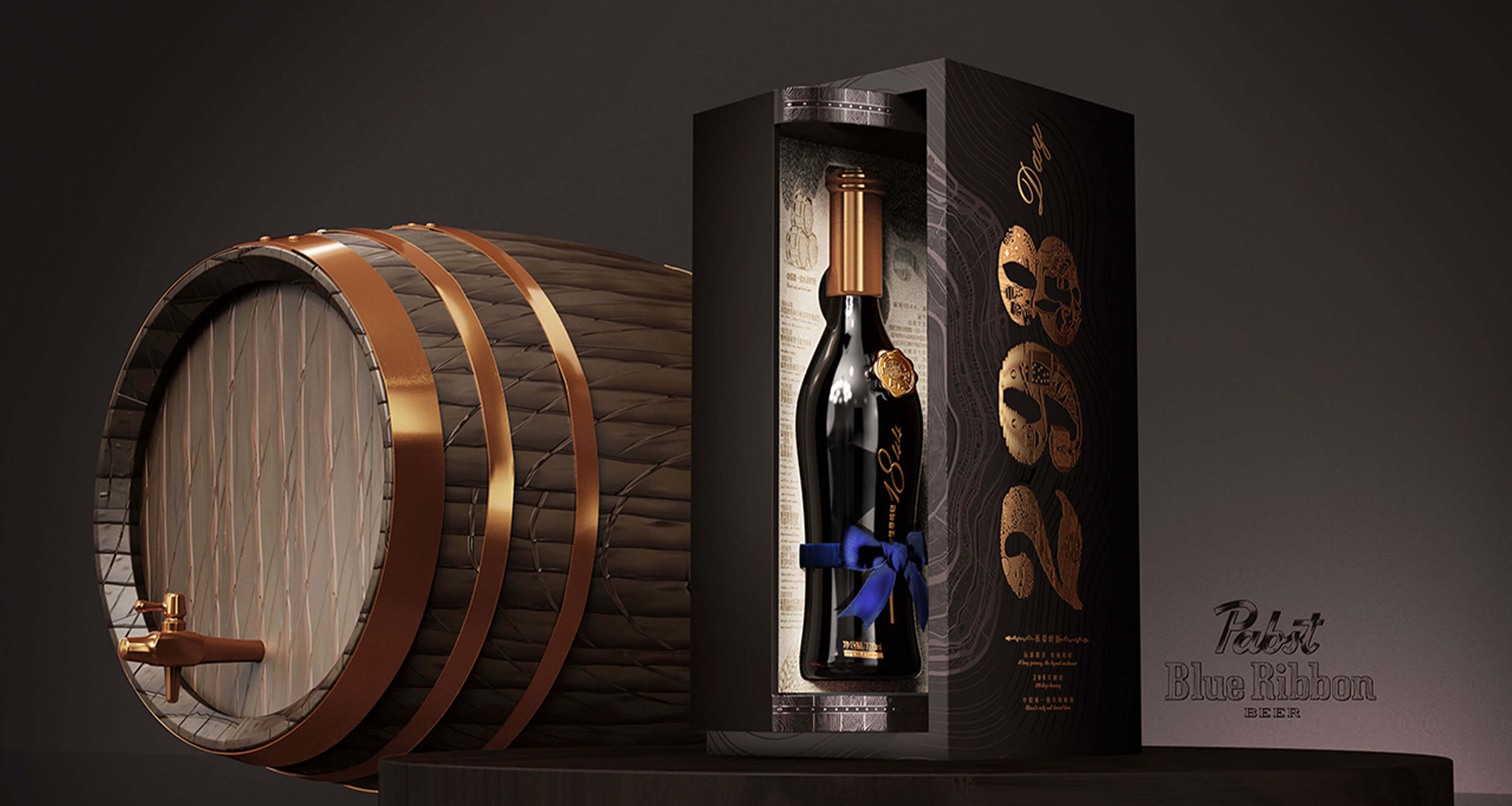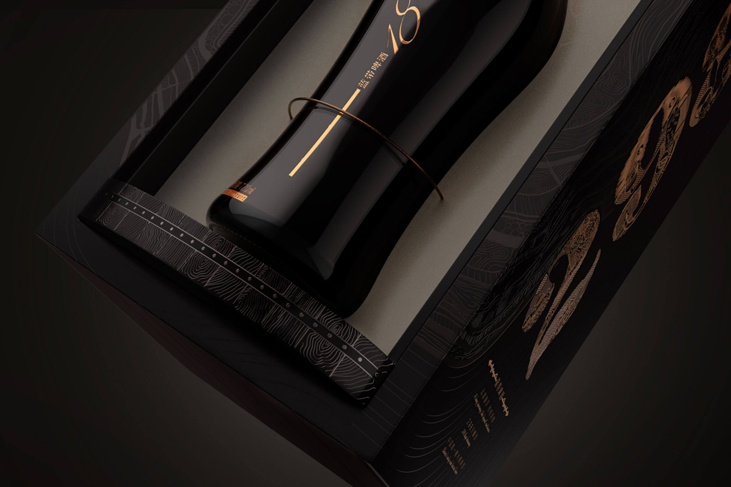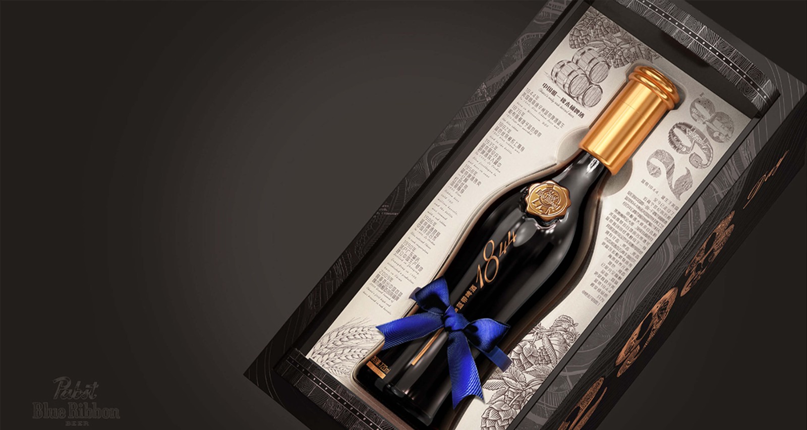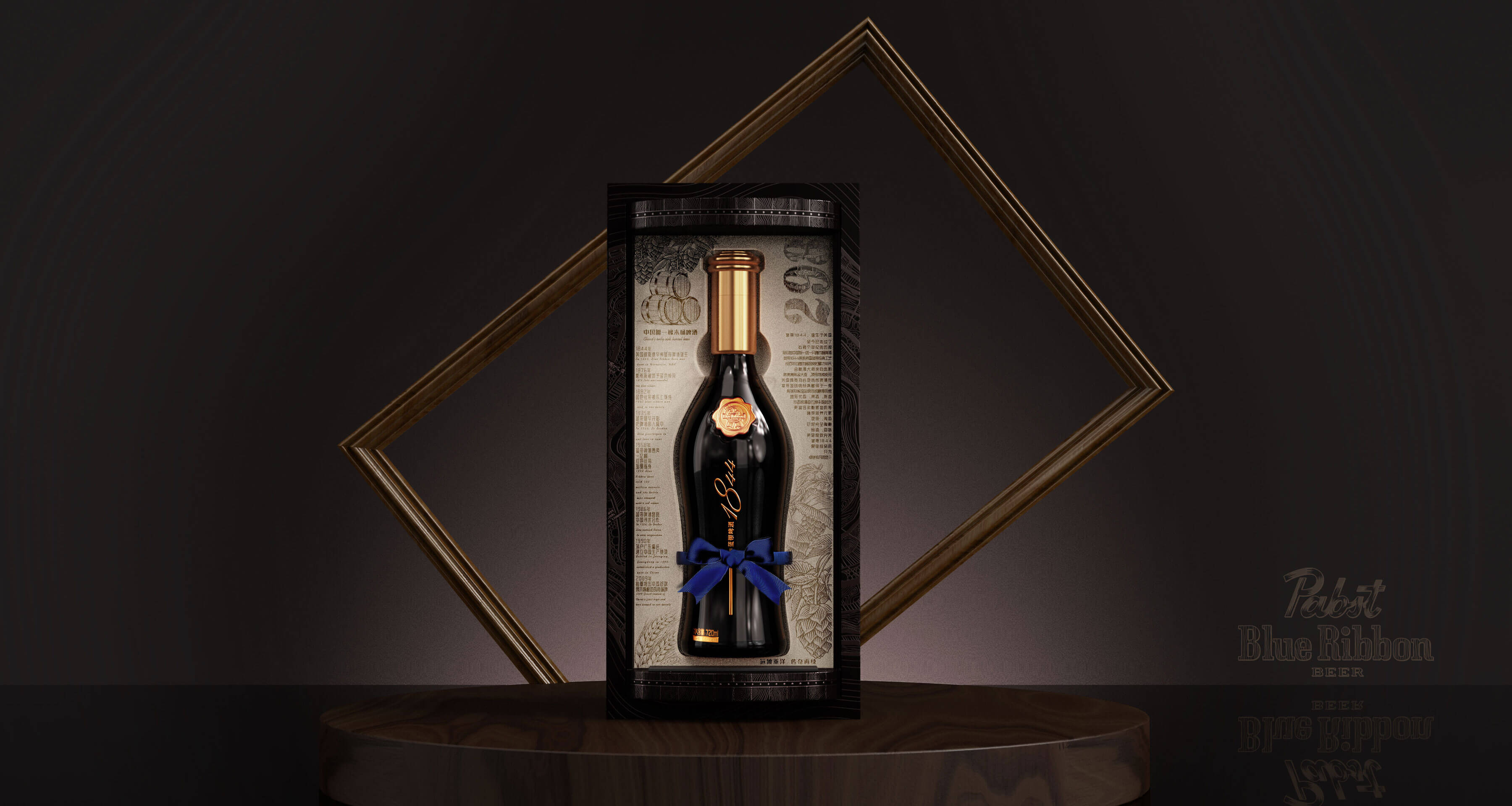 基于藍(lán)帶啤酒的品牌理念及核心價(jià)值,整個(gè)禮盒仿照了橡木桶釀造的感覺,采用了旋轉(zhuǎn)開啟的盒型,內(nèi)盒上下底座的木紋和柳釘燙金工藝的高級(jí)感,隨著旋轉(zhuǎn)禮盒而呈現(xiàn)藍(lán)帶1844啤酒緩緩轉(zhuǎn)身,如同走過(guò)百年歷史面向今天的消費(fèi)者。