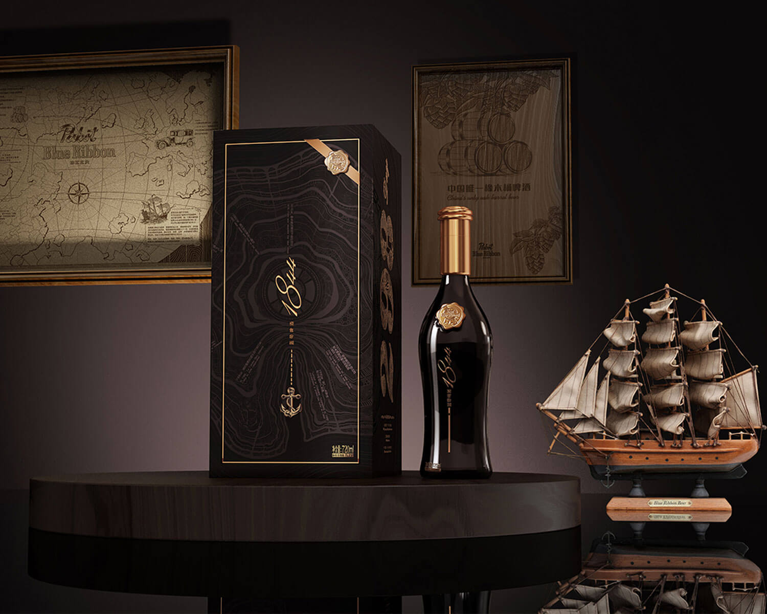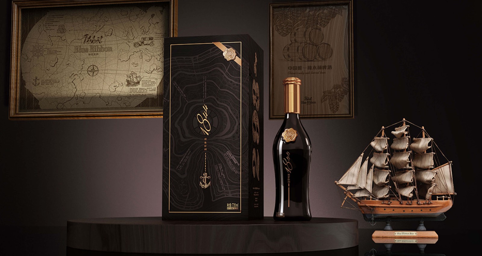 柏星龍?jiān)O(shè)計(jì)師巧妙地將產(chǎn)品禮盒紋飾與火漆logo融為一體,禮盒上的船錨沿虛線向下,伴隨底紋年輪向外延伸,寓意藍(lán)帶品牌歷經(jīng)時(shí)光洗禮愈發(fā)輝煌。更將這份品質(zhì)與榮譽(yù)賦予瓶身,藍(lán)絲帶在素雅禮盒上煥發(fā)獨(dú)特亮色,猶如瓶身的紳士領(lǐng)結(jié),盡顯品牌高端品質(zhì)的藝術(shù)魅力。