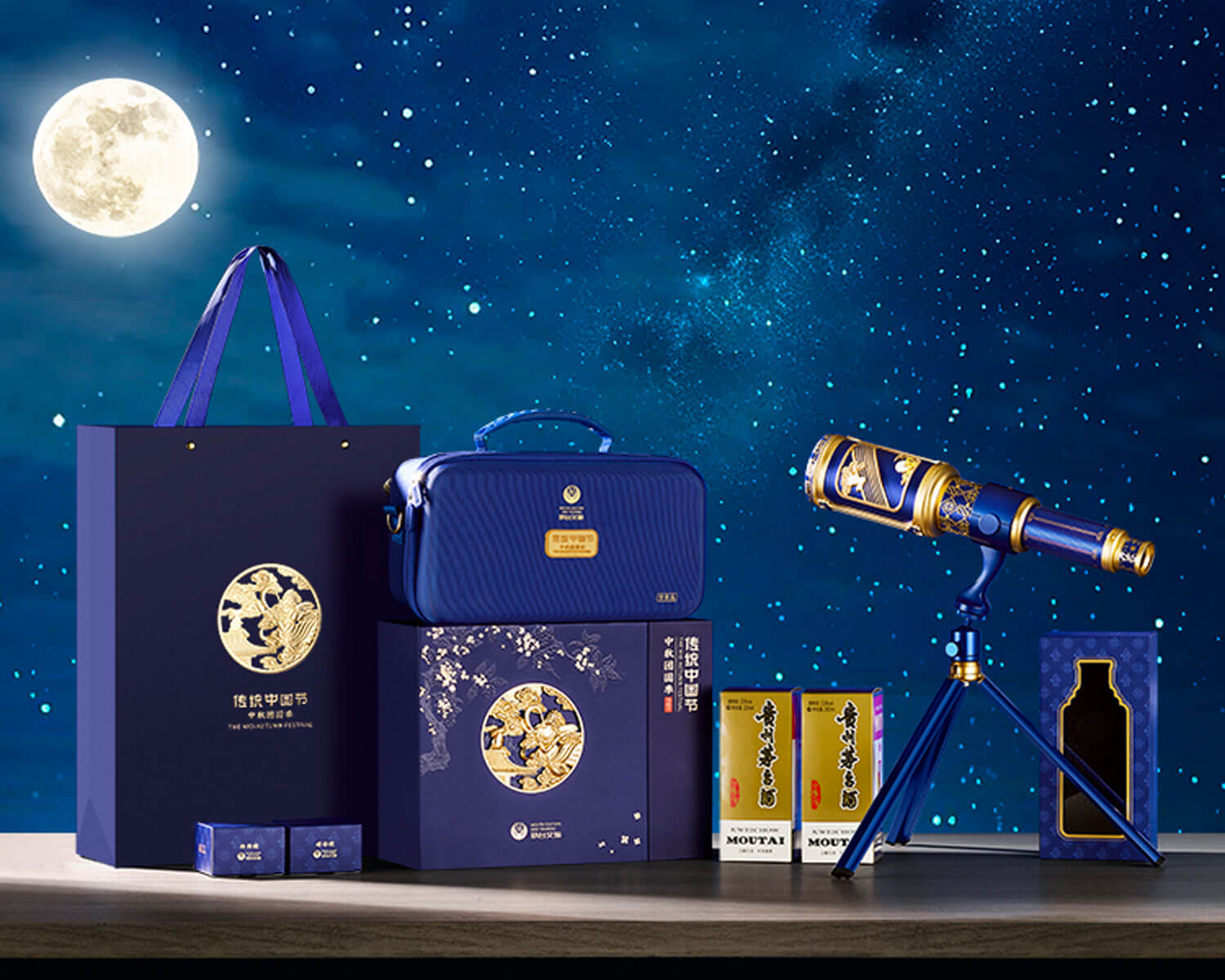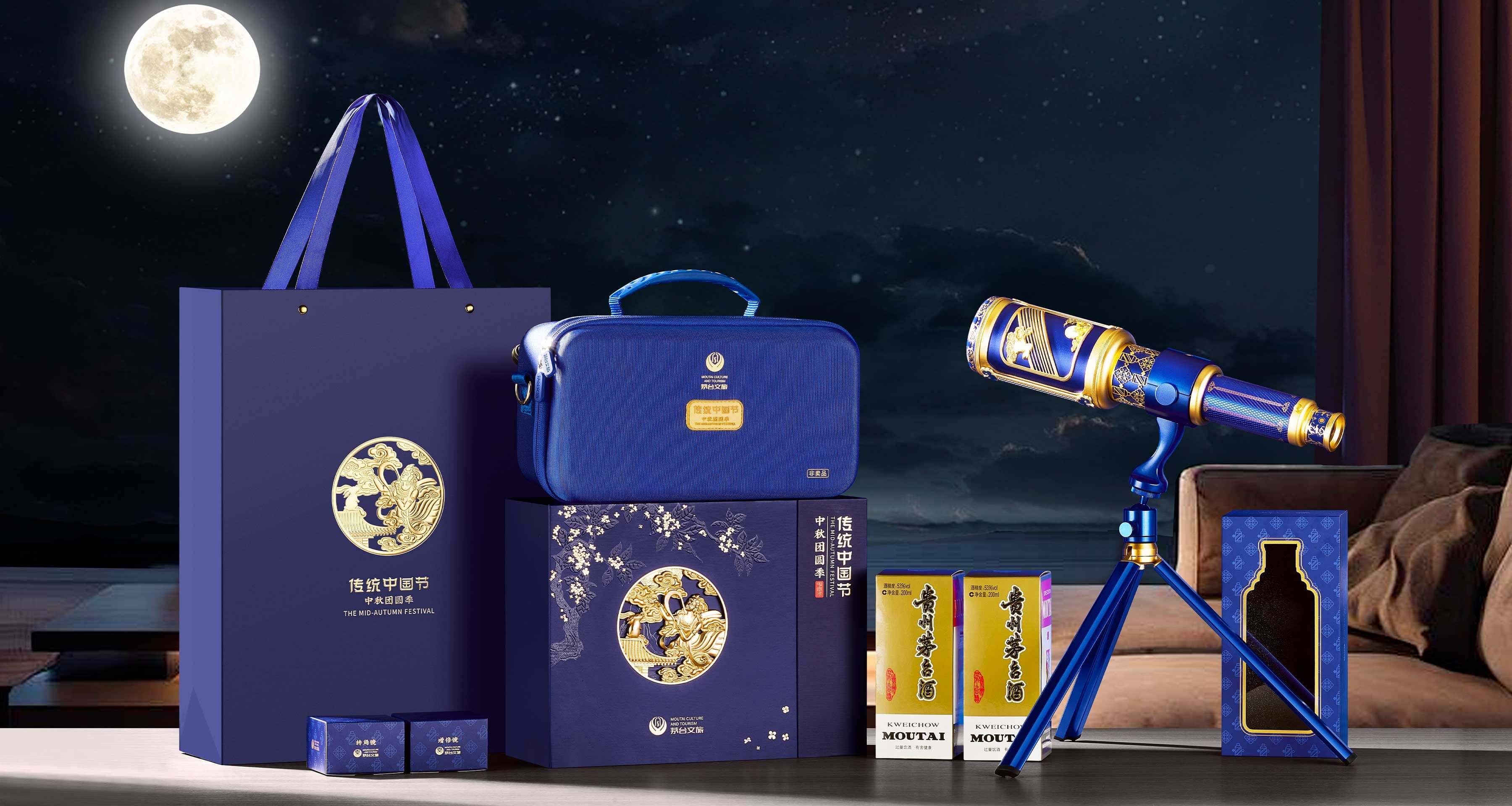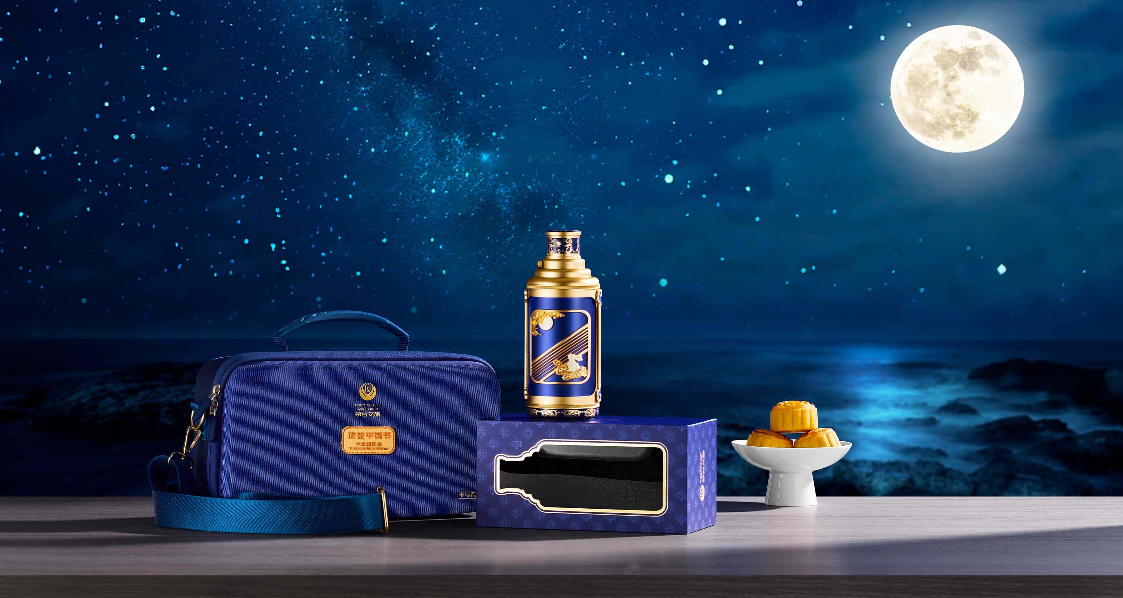 茅臺(tái)中秋文創(chuàng)外盒深邃的靜謐夜空藍(lán),