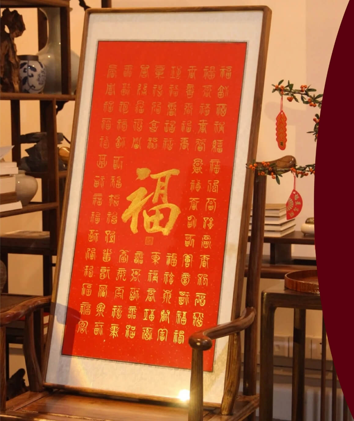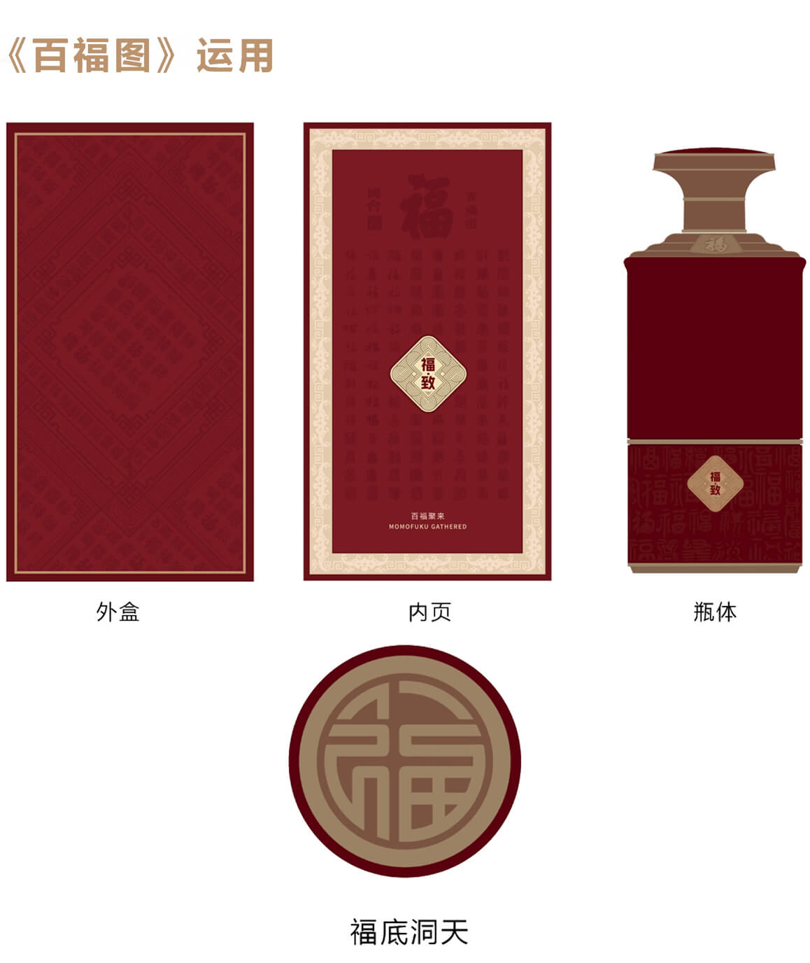 《百福圖》1、以“百?!睘樵O(shè)計(jì)元素,百字百體,字體造型穩(wěn)重、均齊,端莊,極有意趣和韻味。2、一百個(gè)不同字體的“?!弊?,為廣大中國(guó)勞動(dòng)人民所喜愛,寓意百福環(huán)繞,福氣綿延,福氣滿盈,同時(shí)也象征福滿天下。3、用“百?!痹貋?lái)打造“福致”外包裝,讓福落我家。