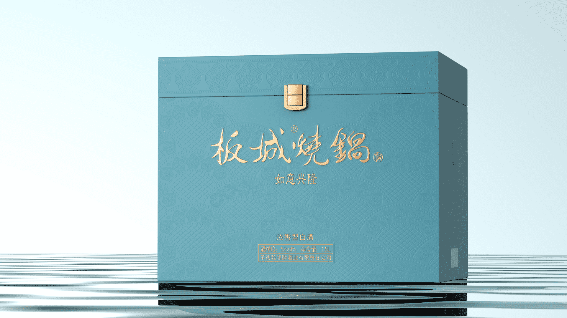 板城燒鍋如意興隆生肖酒外包裝的創(chuàng)作上,以龍鱗、如意元素細節(jié)作為底紋設計主視覺,并以壓紋工藝輔助呈現(xiàn)。