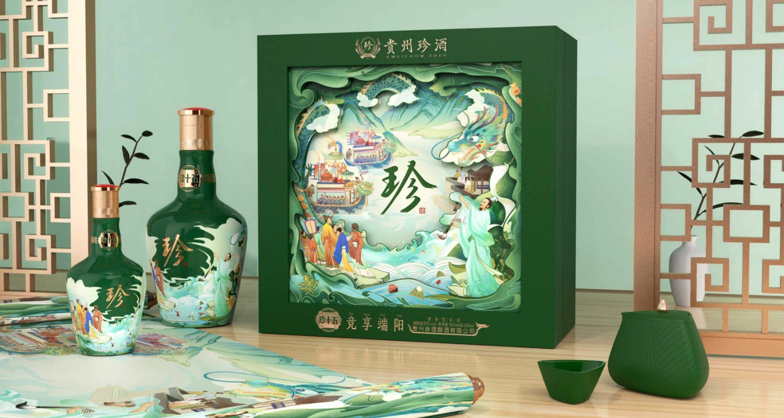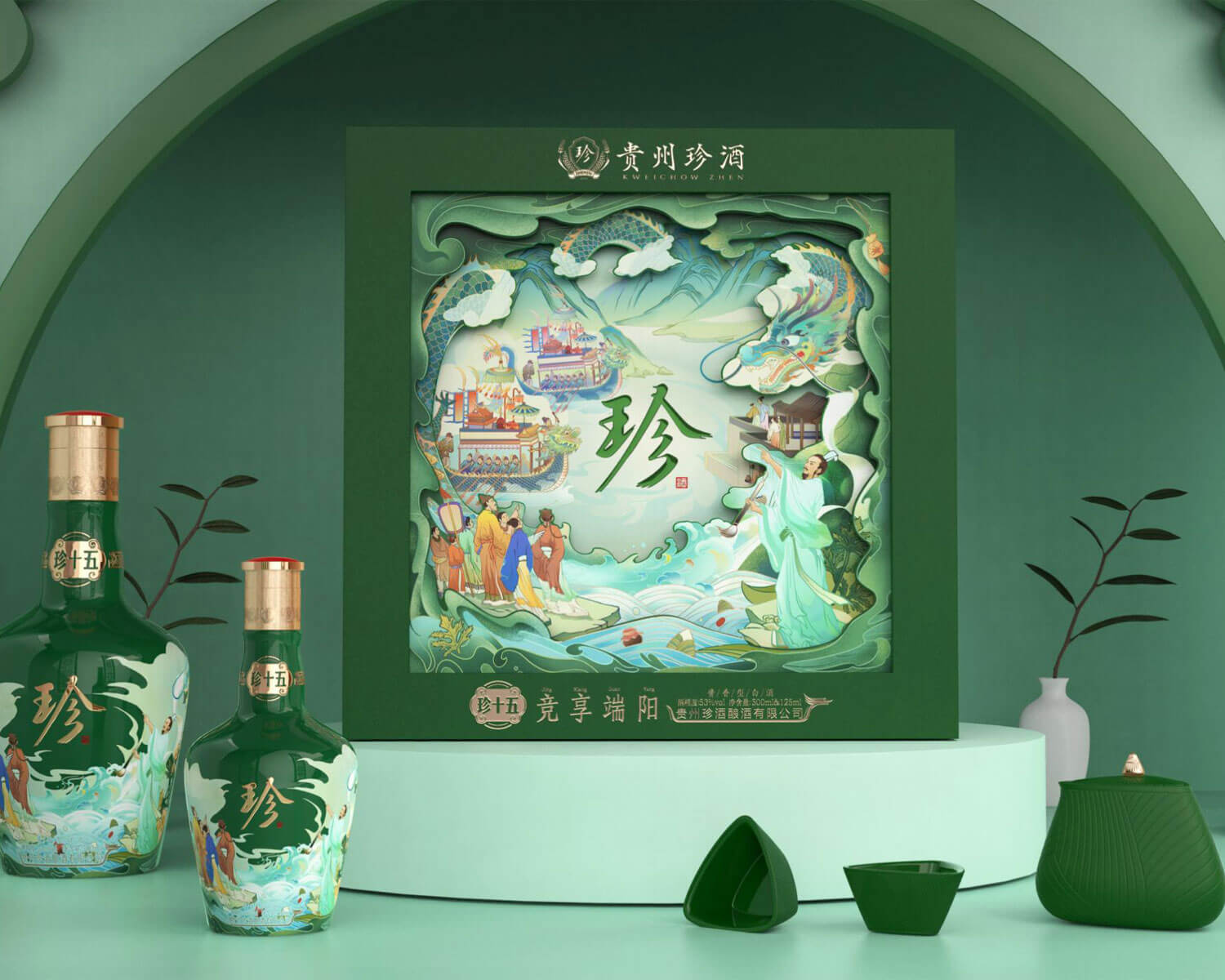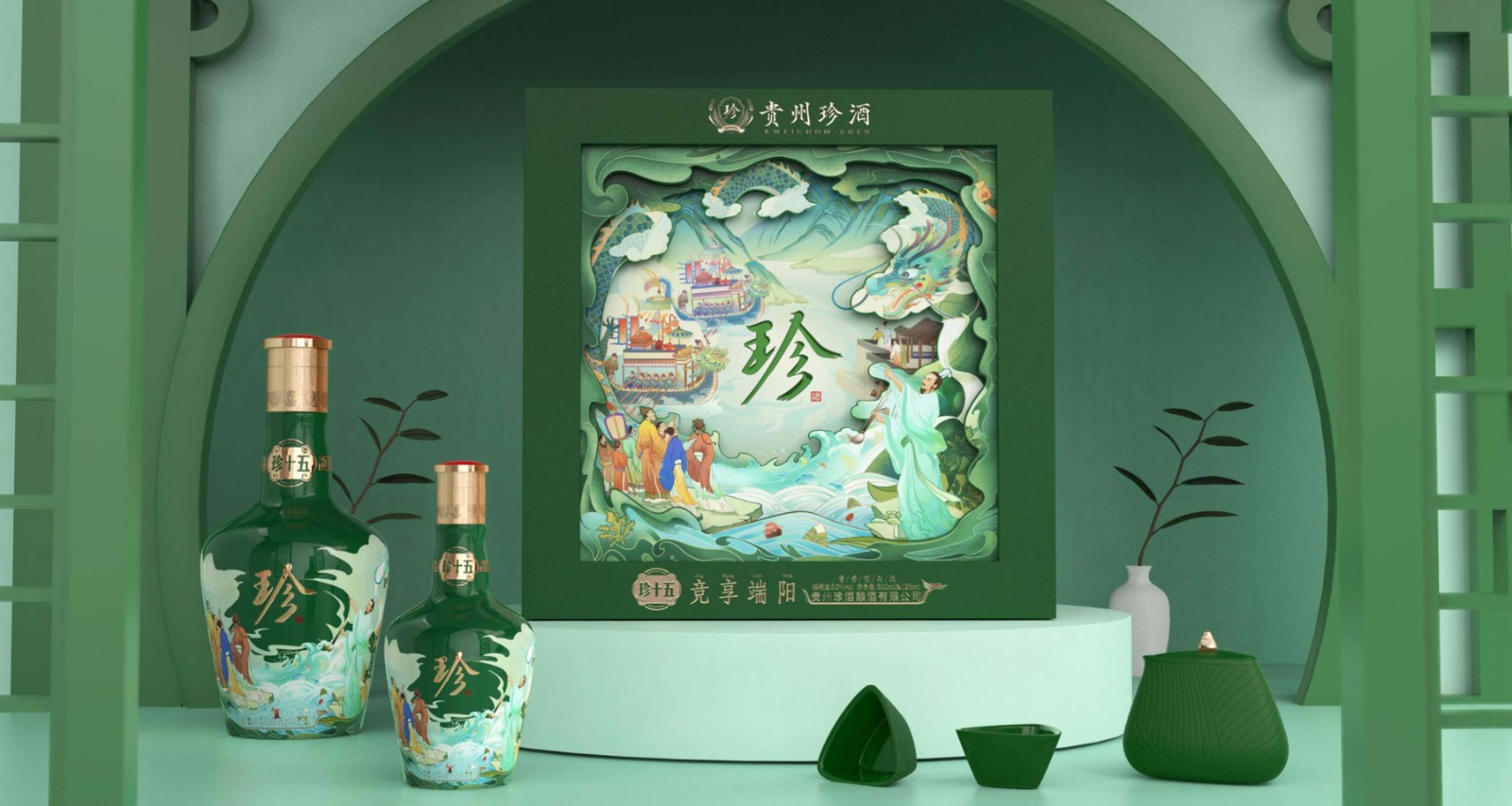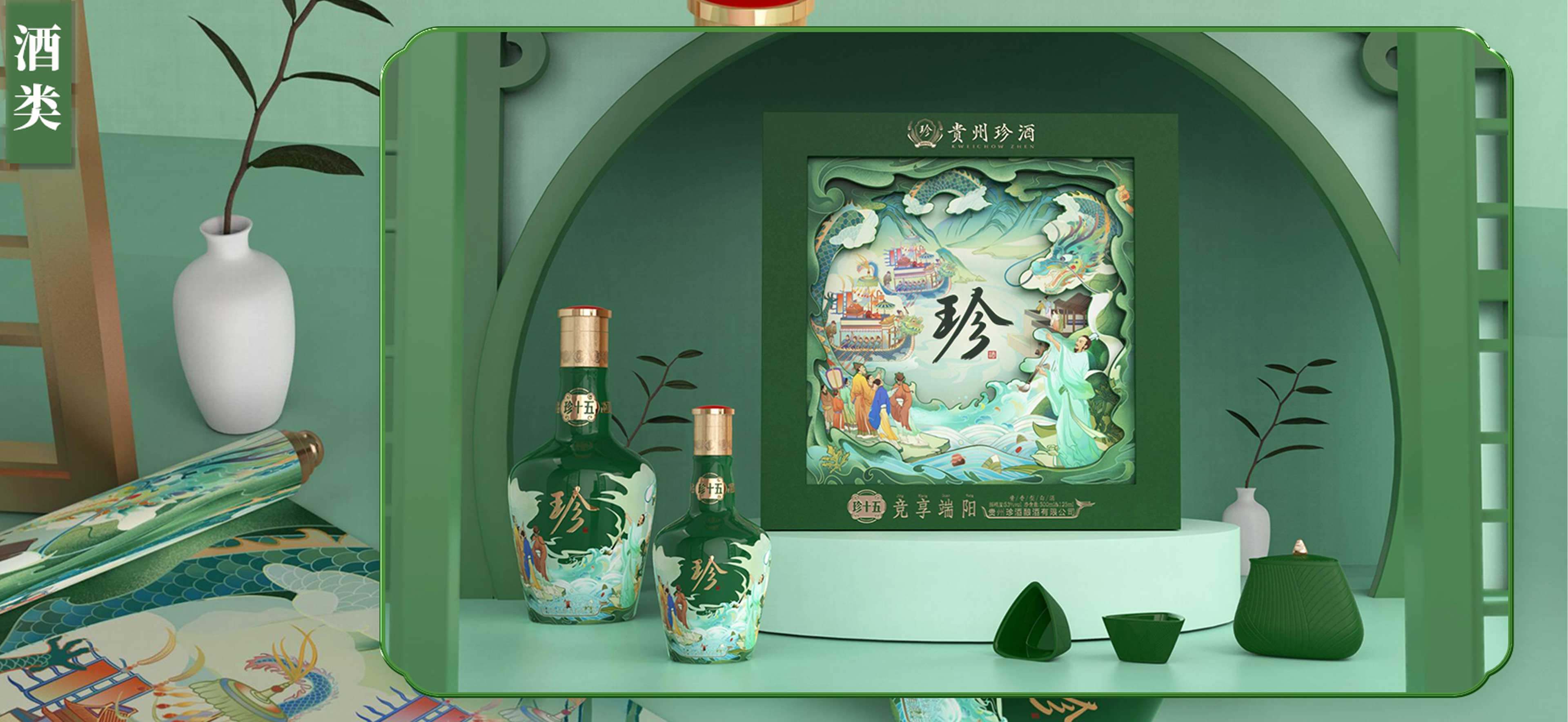 珍酒端午文創(chuàng)以屈原手執(zhí)畫筆描繪端午競(jìng)舟為創(chuàng)意,結(jié)合《五月競(jìng)舟》部分畫面, 重現(xiàn)端午競(jìng)舟畫面,體現(xiàn)歡樂(lè)祥和的節(jié)日氣氛。