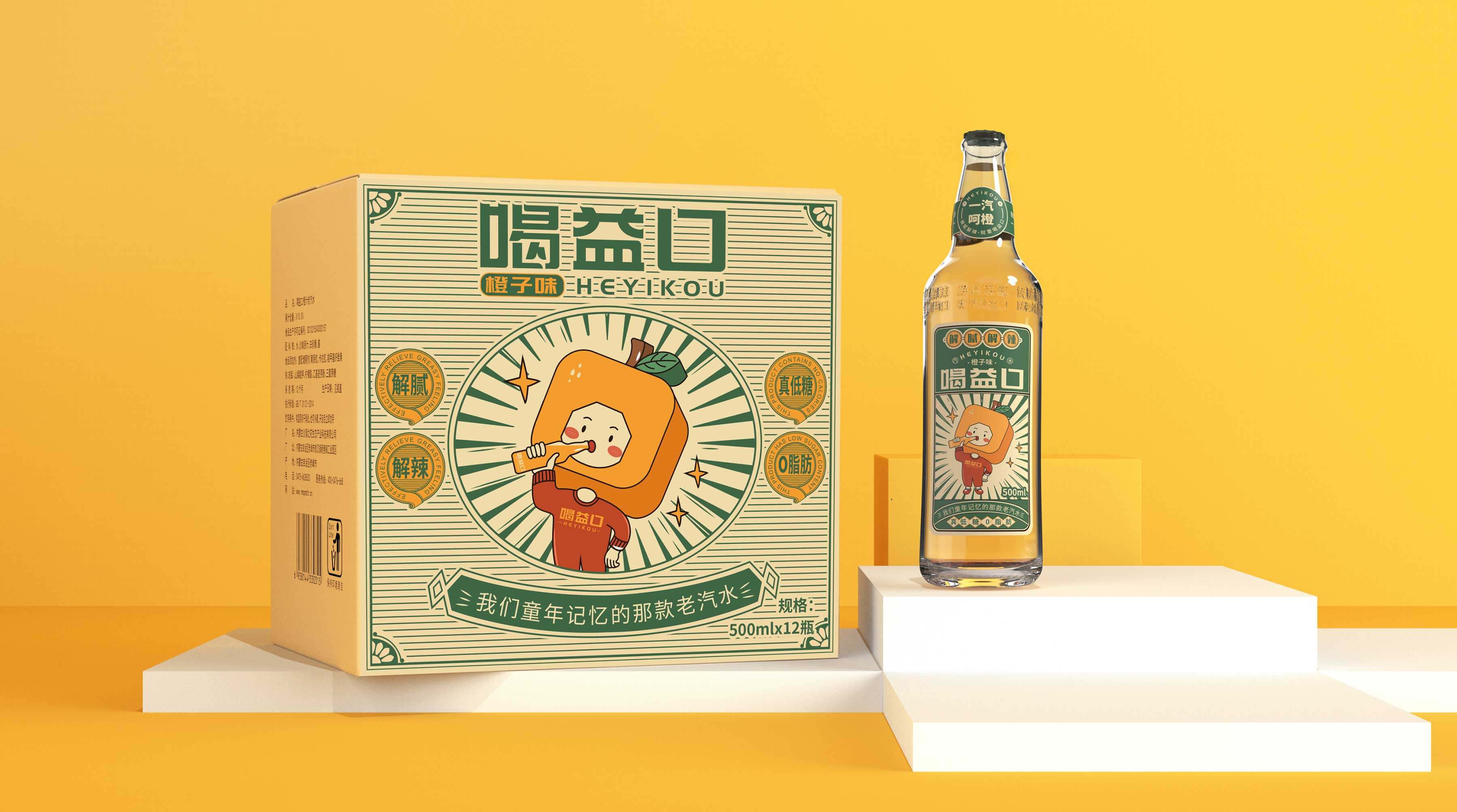 喝益口,華抒飲品企業(yè)旗下的汽水品牌,在南方有較深的線下渠道資源。當(dāng)前國貨興起,老汽水紛紛回歸,分割新型碳酸飲料市場。為此,華抒飲品預(yù)打造一款橙汁味汽水以適應(yīng)市場需求,并與柏星龍合作打造喝益口品牌資產(chǎn)和產(chǎn)品形象。要解決的問題:幫助品牌建立專屬形象,提高品牌識別,從而讓更多的消費(fèi)者認(rèn)識喝益口,記住喝益口并且愿意購買喝益口。